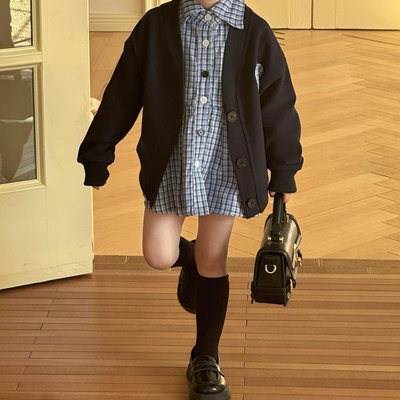 비다이어리.블루체크셔츠원피스